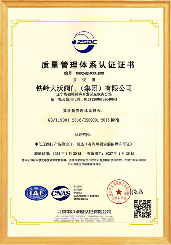 鐵嶺大沃閥門(集團)有限公司,是原鐵嶺閥門廠改制后,以原國有企業各領域的骨干精英為核心所組建的創新型企業。公司在傳承老“鐵閥”所積淀的“管理嚴格、質量第一”精神的同時,將“以客戶為中心,市場為導向,科技創新為支撐”作為發展理念;將“修為礪器,誠信匠心”作為核心價值觀。在近十年的發展歷程中,鐵嶺大沃人通過不懈地探索和創新,逐步形成了獨特的經營模式及核心競爭力。成為遼寧省企業廳命名的省級創新型企業;成為通過ISO 9001質量管理體系、ISO14001環境管理體系和ISO 18001職業健康安全管理體系認證,以及特種設備制造許可證認證......